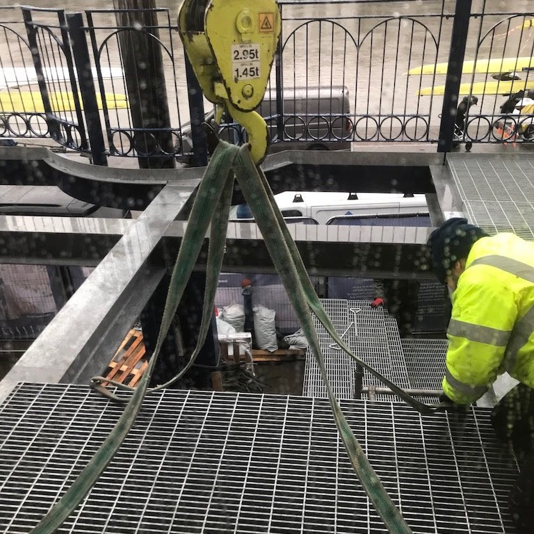 Each section of the carefully lowered grating weighs 200kg!