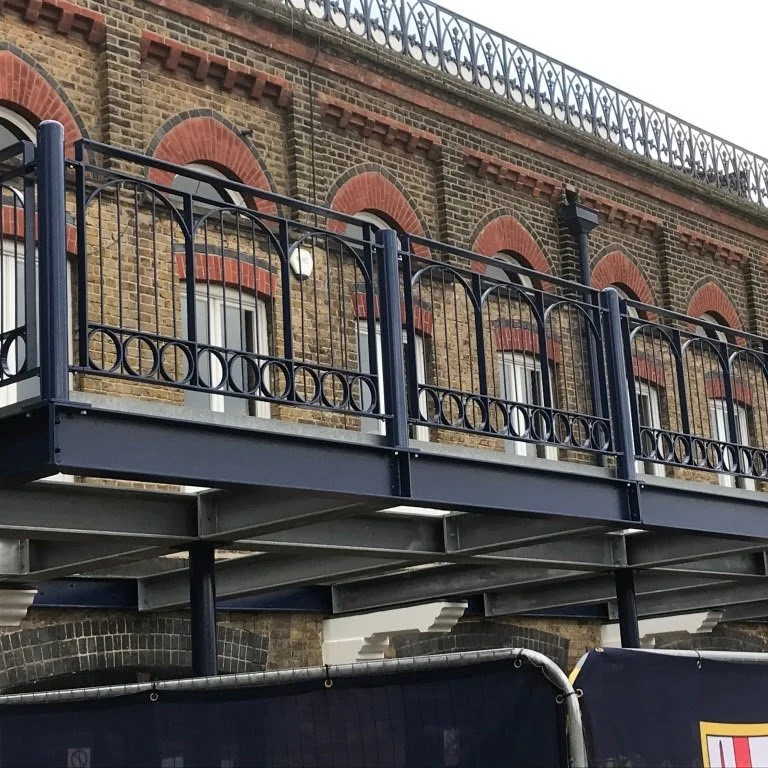 The progress on the new balcony since the last London Roar at the beginning of January has been astonishing. A month ago, the pictures were of demolition in progress. Now, the steel frame has been erected, the new balustrade sections are in place, the steel grating that will support the deck is almost finished and soon the timber deck will start to be laid.