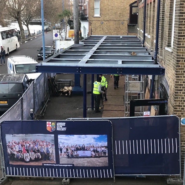 January continued to be a cold and wet month with river conditions being unfavourable. Unfortunately, Quintin Head at the end of January was cancelled and on one trip to Dorney Lake the squad found the lake frozen! Fortunately the squad and wider club have been able to get on the water and keep rowing on the Tideway, at Dorney and at the Docks. Members have had to adapt to changing boating arrangement during the balcony works and have done so in good spirits. The Club has also been busy across January and February with the annual dinner, the new balcony taking shape, the continued search for a Club rowing coach and work progressing to implement boat maintenance related activities.