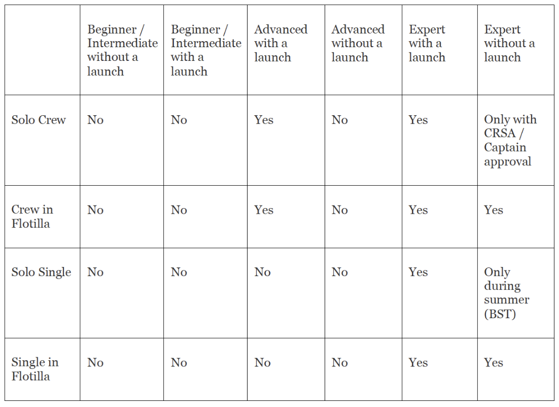 NOTE: beginner crews carry a higher level of risk than other crews as those rowing will lack the skills and awareness to get out of trouble if required, therefore the steer level of the steer does not set the boating permission level.